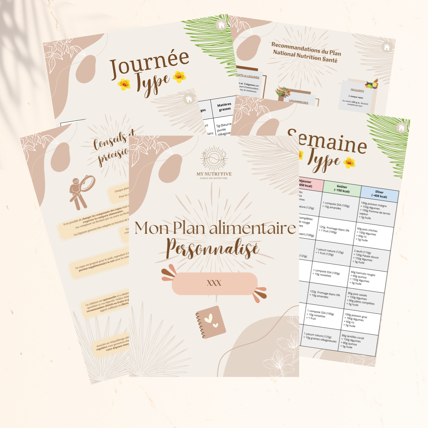 En complément du bilan, possibilité d’obtenir un plan alimentaire personnalisé, comprenant :