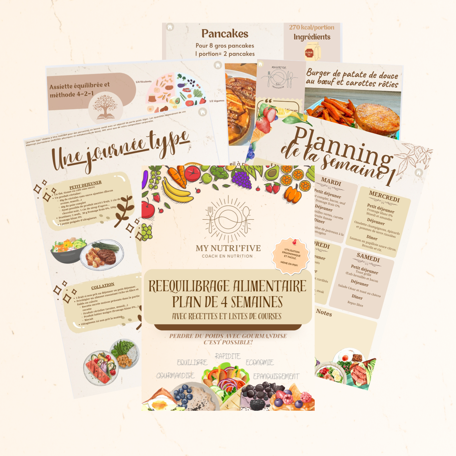Ce e-book t’accompagne étape par étape, avec un programme clair, des menus hebdomadaires, des recettes gourmandes, rapides, économiques, et surtout 100 % accessibles, même sans expérience en cuisine !